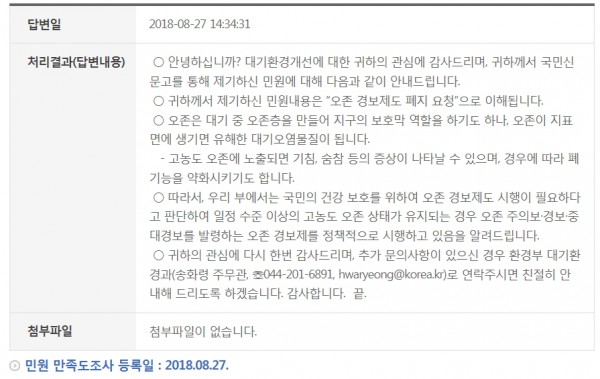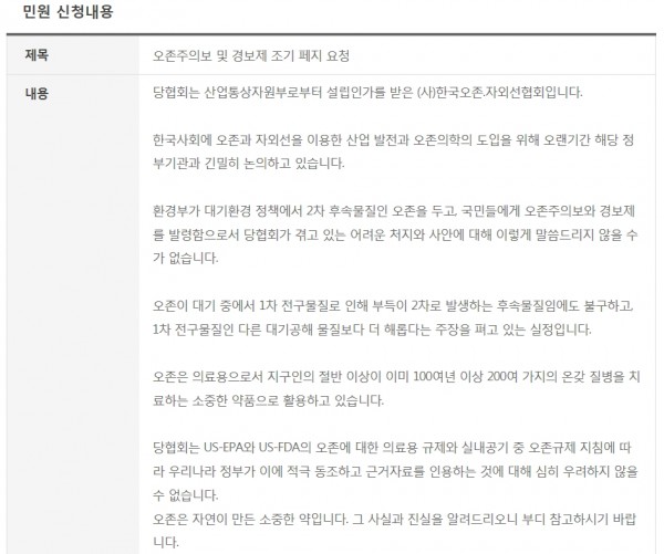 오존주의보 및 경보제 조기 폐지에 관한 국민 신문고 페이지 정보 작성자 최고관리자 작성일18-08-27 17:33 조회1,191회 댓글0건 관련링크 이전글 다음글 목록 본문 당 협회에서 오존주의보 및 경보제 조기 폐지에 관한 국민 신문고에 올린 민원 내용입니다. 댓글목록 등록된 댓글이 없습니다. 이전글 다음글 목록