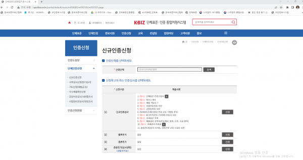 참고로 인증신청 예시화면도 첨부했습니다.